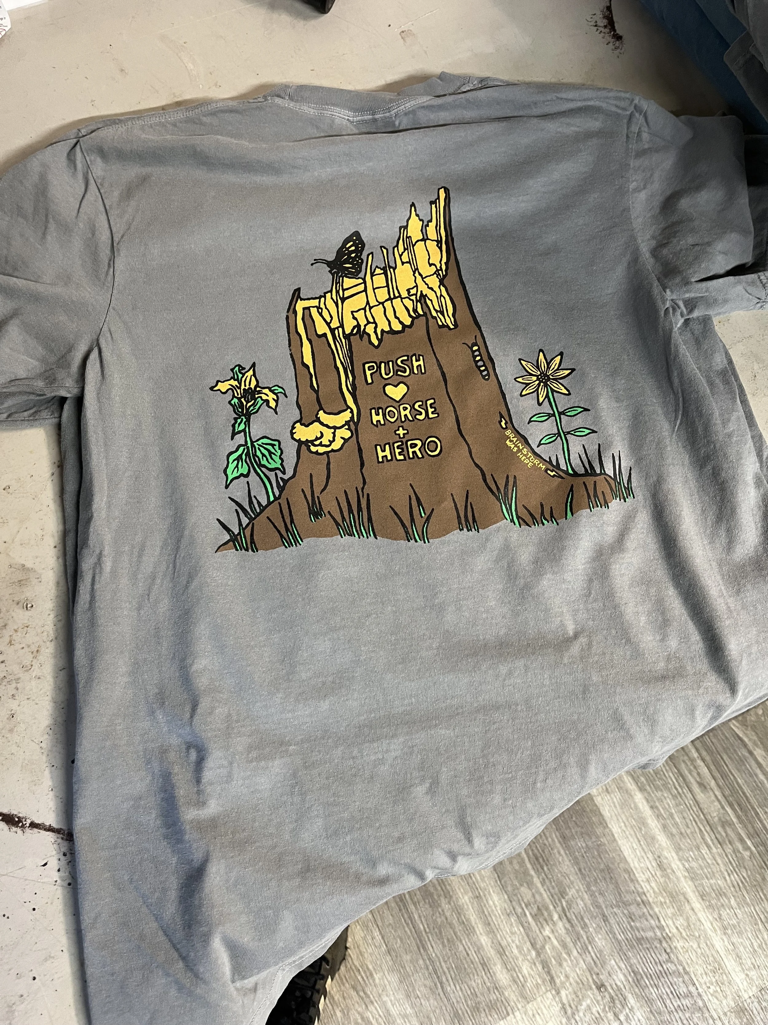 A custom 6 color back print for Wood Stock LLC based out of Hot Springs, NC. For a quote please contact crescentmoonprinting@gmail.com
