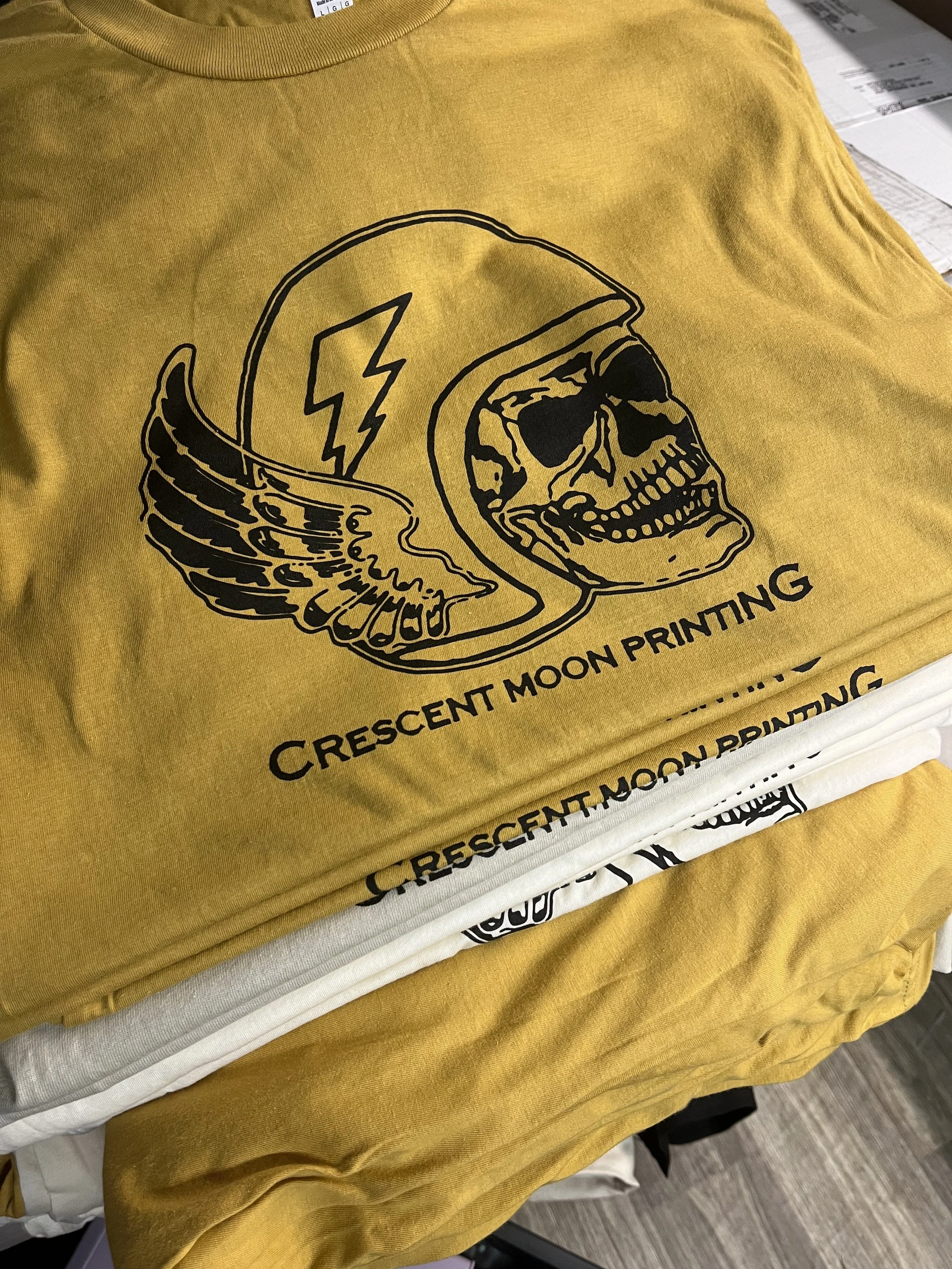 A custom 3 color front print for Lyle Devitry based out of Asheville, NC. For a quote please contact crescentmoonprinting@gmail.com