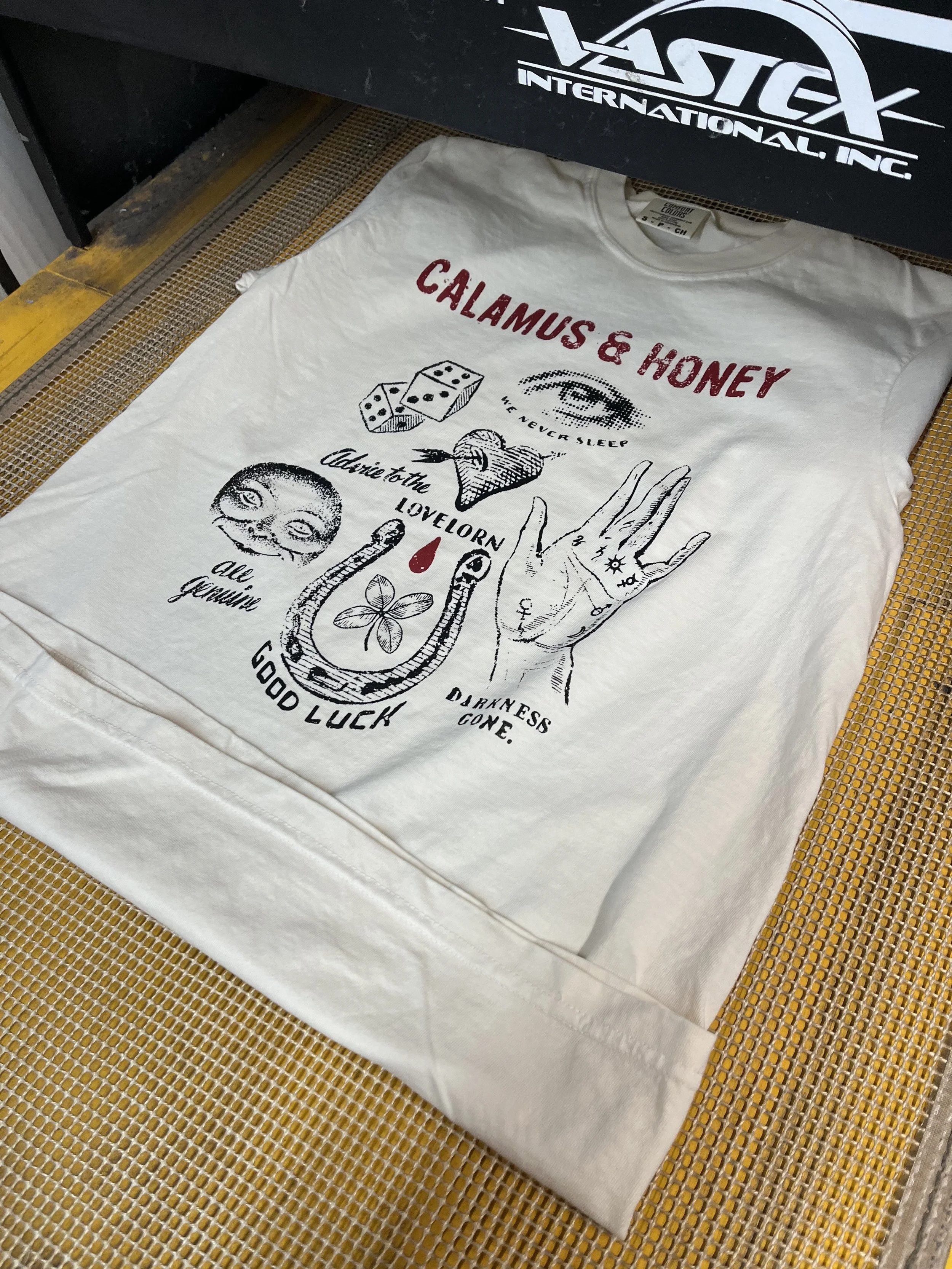 Some single color prints for Sacred Root Farm out of Amite, LA. For a quote please contact crescentmoonprinting@gmail.com